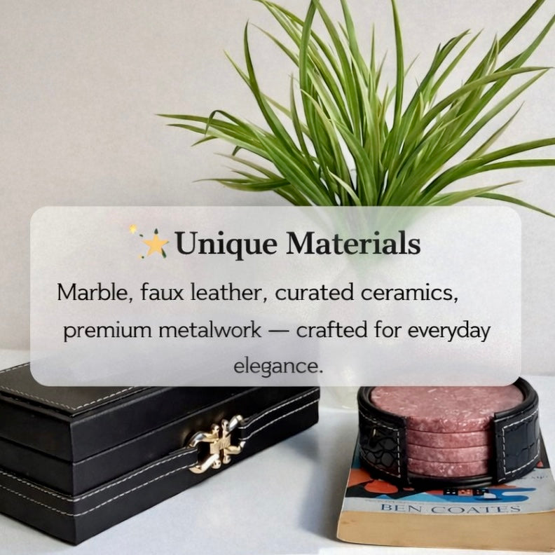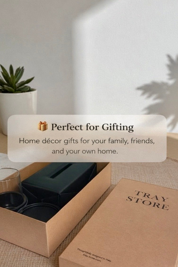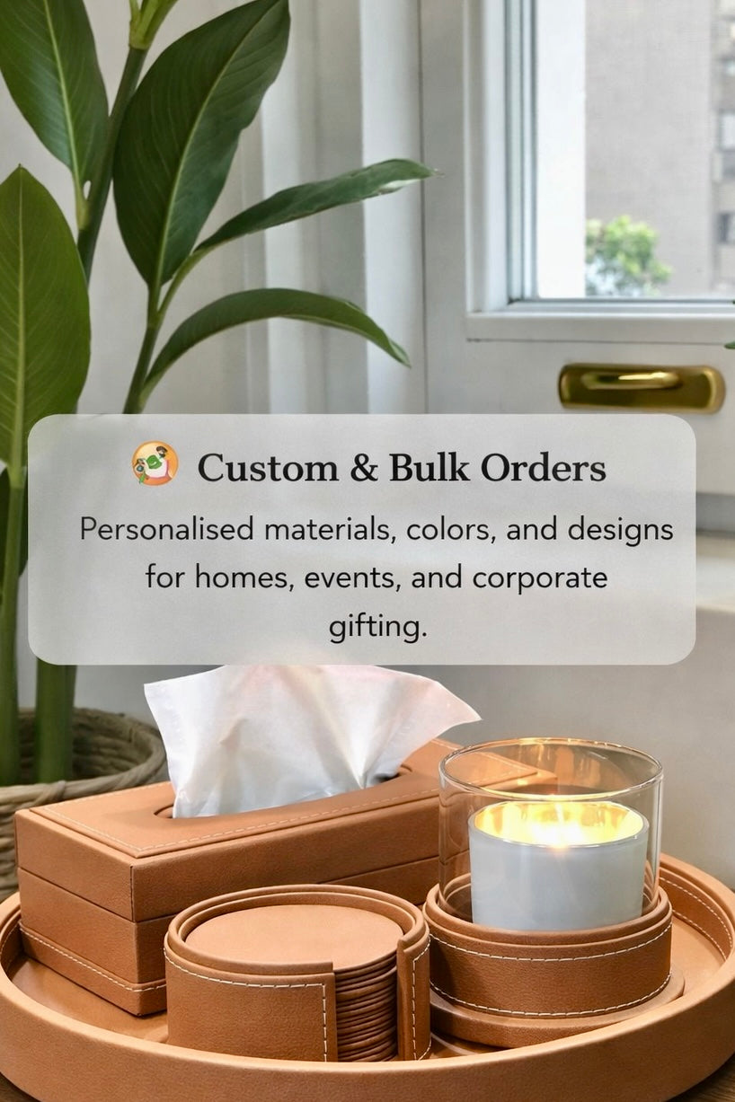 IZNIK Round Black Faux Leather Tray with Golden Buckle