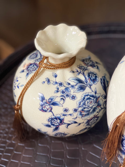 ASPEN Blue & White Floral Ceramic Vase 6.5"