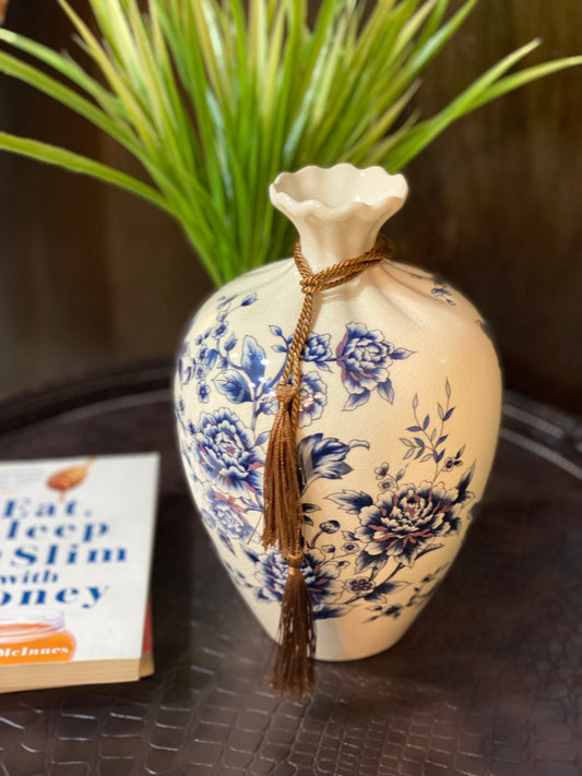 ASPEN Blue & White Floral Ceramic Vase 10"