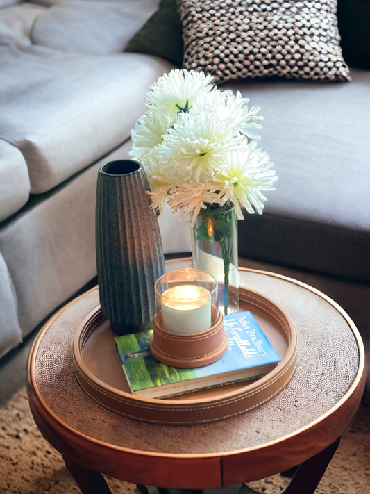 IZNIK Round Black Faux Leather Tray with Golden Buckle