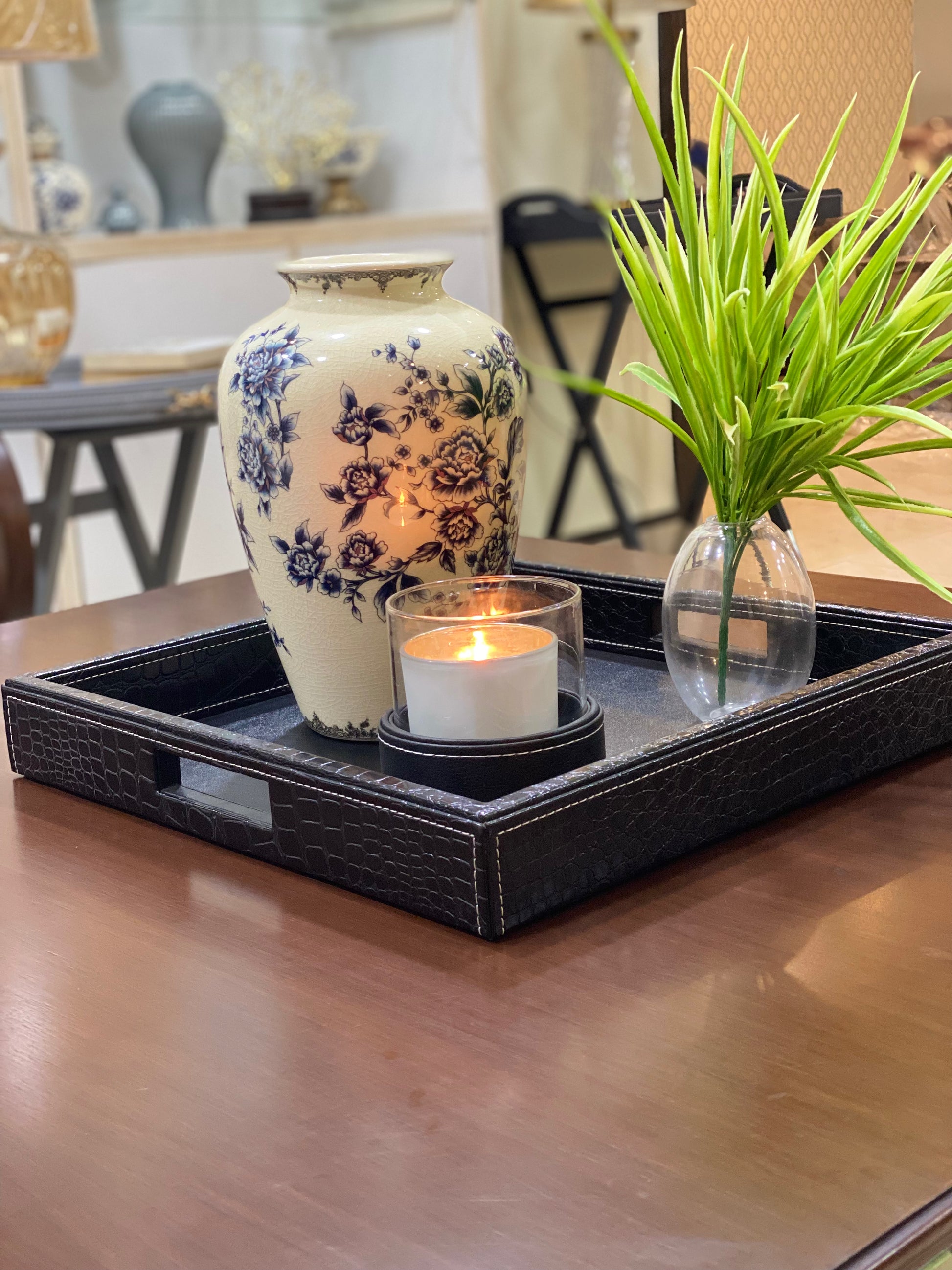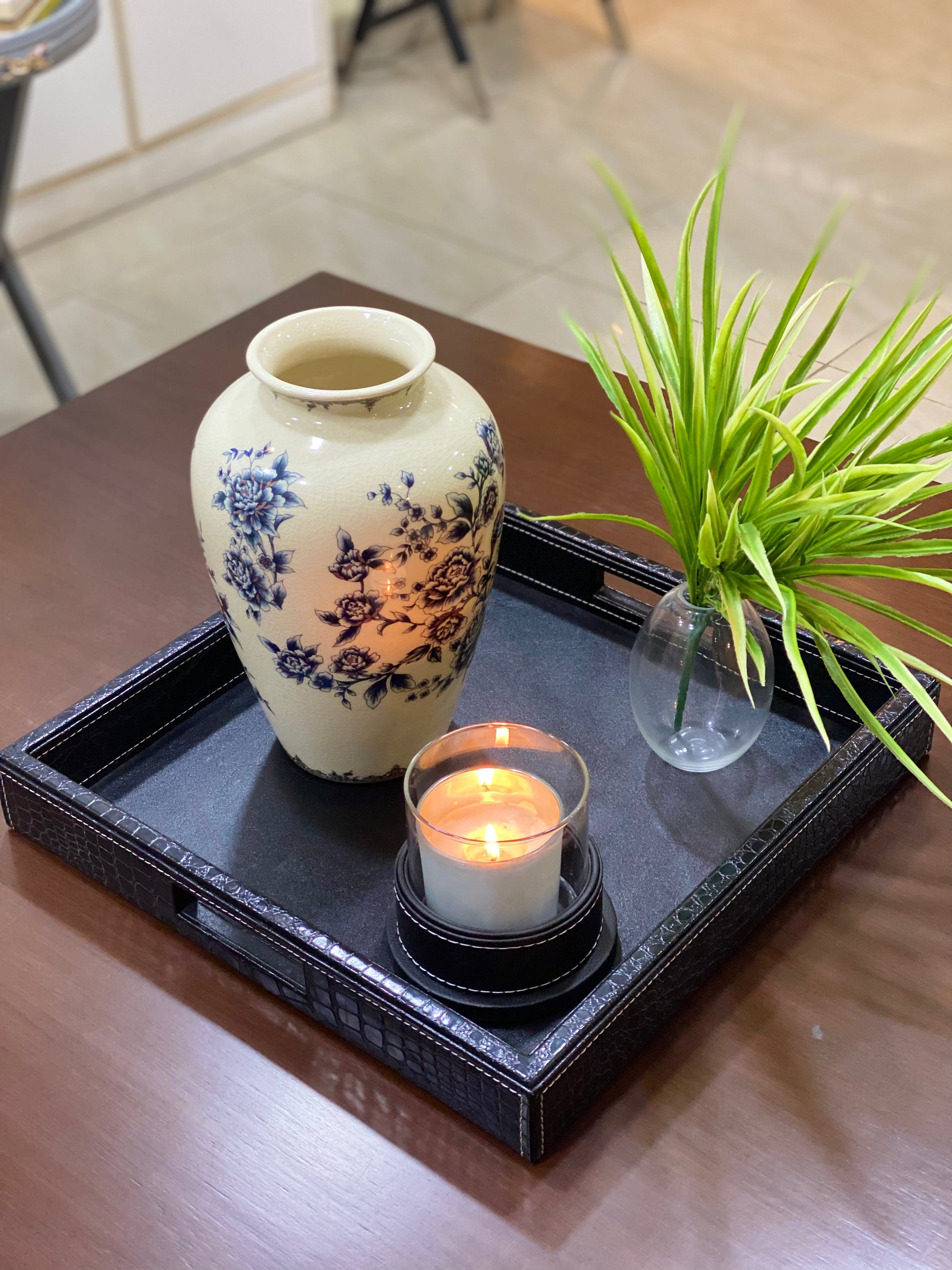 ASPEN Blue & White Floral Ceramic Vase 11.5"